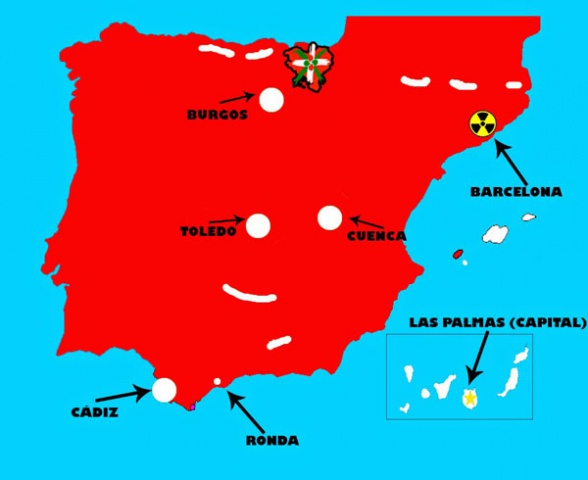 Así, intercalando las peripecias de Noriega con recortes de prensa y varios relatos de diferentes supervivientes a los que entrevista, Jaime Noguera nos traslada a una España muy reconocible a pesar de estar devastada, donde el Gobierno al principio no se entera de nada, el Peñón de Gibraltar ha ampliado sus fronteras, la de Ceuta se ha bombardeado para evitar que las hordas zombi marroquíes la traspasaran, Euskadi se ha independizado y resiste a los zombis gracias a algunos comandos de la kale borroka, Barcelona ha desaparecido tras ser bombardeada con armas nucleares por los franceses, en Toledo resisten algunos defendiendo el Alcázar bajo las órdenes de Arturo Pérez-Reverte… y en todos sitios encontramos a personajes que nos resultan familiares y verosímiles.