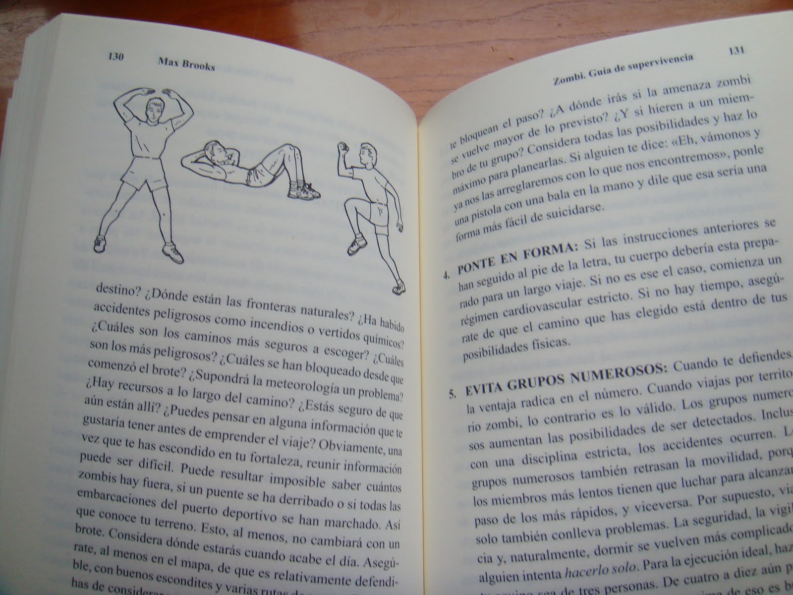 – Huyendo: El autor, nos da pautas específicas sobre lo que hay que tener en cuenta si no te queda más remedio que huir, desde el equipo que se llevará encima hasta la clase de terreno más idónea para huir o los vehículos que se pueden usar para tal fin.