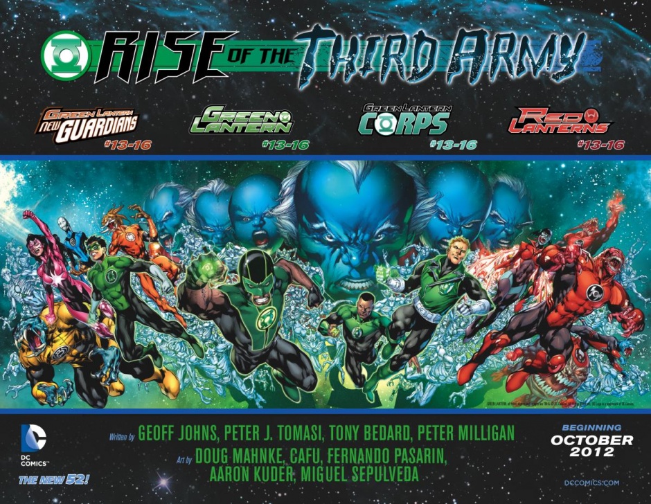 El gran evento del año está a solo un mes de comenzar, el pasado 29 de Agosto DC Comics nos traía Green Lantern annual 1, de la mano del guionista Geoff Johns y del dibujante Ethan van Sciver, un cómic que nos sirve de prólogo para Rise of the Third Army, en el nos enseñan una de las piezas claves del crossover, el primer Lantern. De él se sabe que fue encerrado por los guardianes hace mucho tiempo por una buena razón, como nos comenta el guionista de la serie Matt Idelson. Este primer Lantern es uno de los seres más poderosos del universo pero también uno de los más peligrosos. Estas declaraciones de Geoff Johns y Matt Idelson han creado gran expectación entre los fans del cómic, todos nos preguntamos: ¿Será el primer Lantern la pieza clave para que los Lanterns de las distintas emociones puedan derrotar al Tercer Ejército o será su perdición?