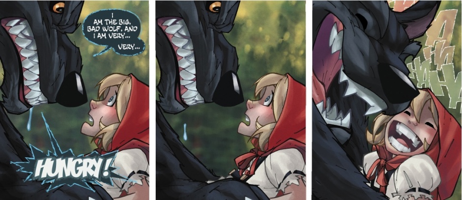 Los personajes, aunque ya conocidos por todos, tienen un carisma increíble, desde Caperucita hasta Grim o Peter Pan. De hecho están tan bien caracterizados que parece mentira que no los hayan inventado ellos. Aquí es donde se funde guión y dibujo.