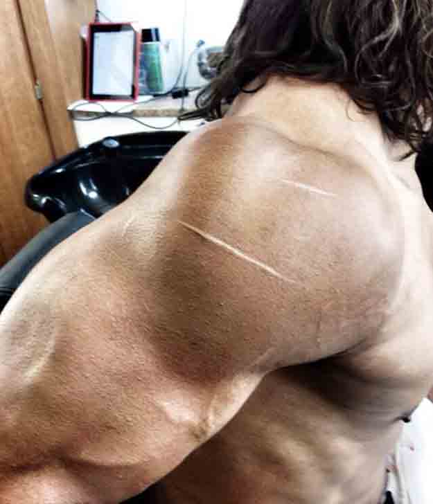“En el remolque de maquillaje – HERCULES. Pregunté como me hicieron las cicatrices en mi hombro. De una mujer satisfecha con uñas largas ;)”