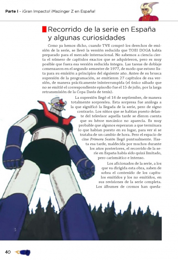 Otro apartado se basa en analizar las pervivencias de la serie en nuestro país, desde su emisión hasta la actualidad, con curiosidades como Mazinger Z en las festejos populares españoles como la Cabalgata de Reyes, además de las secuelas de la saga o su paso por el cine.