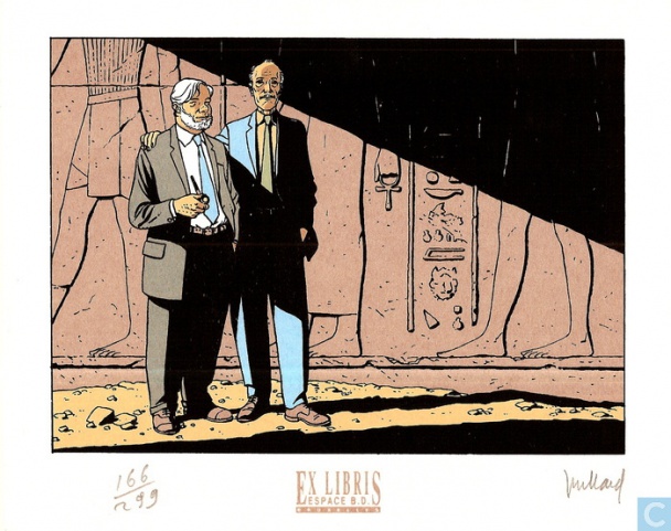 Edgard Félix Pierre Jacobs (30 de marzo de 1904 – 20 de febrero de 1987), más conocido por su firma como “Edgar P. Jacobs” es el creador, ya sabéis, de 2 de los personajes más célebres (y exitosos) del cómic franco-belga: “Blake y Mortimer”. Diversos autores han continuado su legado y las aventuras de estos 2 ingleses siguen siendo, hoy en día, uno de los cómics más vendidos en Francia. Didier Convard (“El Triángulo Secreto”) y André Juillard (“Las Siete Vidas del Gavilán”), es decir, 2 de los autores franceses de mayor prestigio en el país vecino, crearon en 1998 un cuento ilustrado que explica la última aventura de estos 2 personajes, ya como ancianos. Este cuento o libro ilustrado perteneció a la colección de Dargaud “Le Dernier Chapitre” donde también apareció, por ejemplo, la “última” aventura de Johan et Pirlouit (creados por el mítico Peyo). En total fueron 4 cuentos que se recopilaron en un álbum en 2009. Pues bien, acaba de aparecer, como novedad, en Italia, el cuento dedicado a Blake y Mortimer (titulado “L’avventura immobile”) y sólo viendo su portada, que es esta…:
