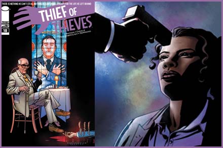 Prueba de ello es el cómic ‘Ladrón de ladrones’, que ya va por su tercer volumen publicado en España de la mano de la editorial Planeta DeAgostini Cómics. Desde su inicio con aquella maravillosa viñeta en la que veíamos a Conrad Paulson frente a un marco en una galería de arte, podíamos intuir que la trama iría yendo y viniendo con diferentes robos en cada arco argumental. Algo muy lejos de la realidad, ya que gracias a este tercer tomo, vemos el desenlace del ‘macguffin’ que se había venido gestando desde aquella primera página.