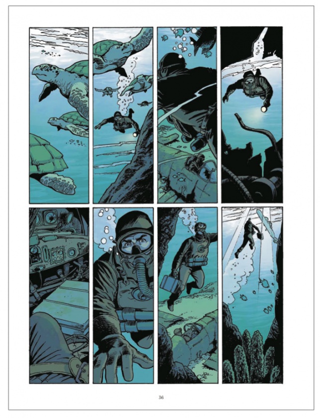 En cuanto al dibujo, hay poco que añadir respecto a lo ya mencionado en las cuatro reseñas anteriores, Pasquale del Vecchio, el dibujante, lleva a cabo un trabajo notable destacando a la hora de representar escenarios marinos. Nuevamente, me gustaría hacer una mención especial al colorista del tomo, Hubert, por su buen trabajo.