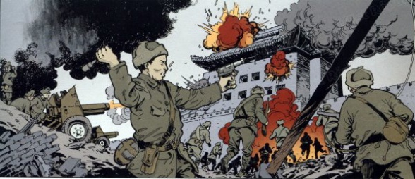 Por tanto, la ocupación japonesa en la zona de Manchúria, las tensiones entre chinos ocupados y japoneses conquistadores, así como la alianza americana y japonesa; serán meros pretextos o hilos conductores de lo anterior. Y es que en ningún otro tomo de WW2.2 la otra guerra mundial se pueden contemplar con tal claridad las brutales consecuencias de la guerra sobre la población civil como en este. En este sentido, Hubert, el guionista del volumen, ha estado muy acertado, relatando sin ningún tipo de restricción todos los horrores de los bombardeos, las ejecuciones, las revueltas…para todos los bandos: soldados, bienes materiales…Además, para ahondar aún más en el desprecio de la vida humana y la deshumanización del rival, el escritor introduce una relación macabra entre el general japonés y el teniente, que solamente puedo calificar de sumamente desconcertante y cruel. El giro argumental supone, pues, todo un verdadero punto de inflexión en el volumen.
