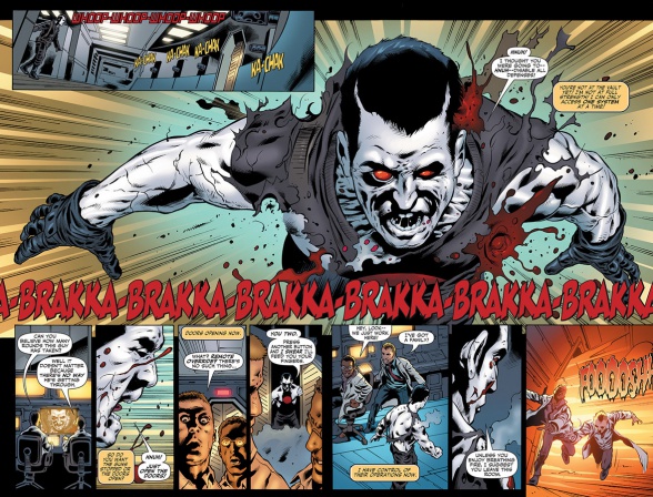 Independientemente de los sentimientos anteriores y las el devenir de la trama, lo cierto es que, en lo que a acción se refiere, ‘Auge y Caída’ es una genialidad. En otras palabras, ya sea por los grandes enemigos introducidos, el peculiar escuadrón de agentes estatales y la anciana sádica conocida como ‘Yaya’; Bloodshot tendrá bastantes dificultades en este tomo. Y recibirá, por tanto, múltiples lesiones que pondrán a los nanites al límite ya que, pese a su gran capacidad, necesitan una gran cantidad de proteínas para funcionar. Pese a que le toque recibir mucho, el protagonista también se dedicará a disparar a numerosos objetivos, tantos que se pierden la cuenta del número de muertes en el volumen.