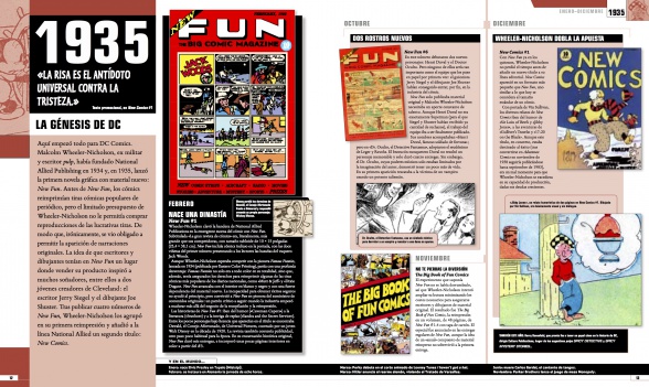 Tras una breve introducción, el libro comienza situando al lector en la década de 1930, concretamente en febrero de 1935, cuando nace la revista ‘New Fun’, pilar fundamental de DC Comics. A partir de aquí iremos viendo diferentes sucesos que se fueron dando a lo largo de los meses, todos ellos ligados eso sí a la editorial ‘National Allied Publishing’, que más tarde se convertiría en la editorial que da nombre a este volumen. Así, vamos viendo cómo van evolucionando los temas que se iban tratando en los diferentes números: desde el género policiaco hasta las aventuras, pasando por la ciencia ficción, como era el caso de la historia ‘Federal Men’ de ‘New Comics #10’, donde unos jóvenes Jerry Siegel y Joe Suster comenzaban a plasmar en papel sus deseos de contar historias fantásticas.