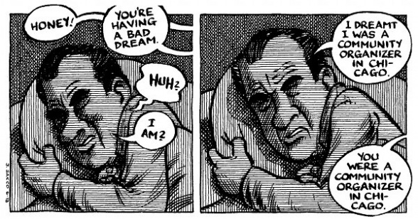 El aparente caos y desorden de cada viñeta están perfectamente dispuestos para manifestar al lector el modo de vida estadounidense. Ese mundo imaginario que crea, al que Nixon acude para hacer lo que le viene en gana, no es otra cosa que una visión de Oriente Medio, una tierra que lleva años siendo asediada por tropas y tropas del ejército de EEUU entre otros.