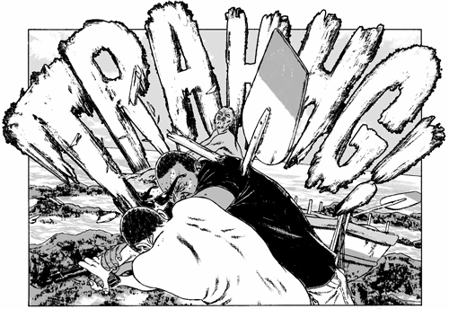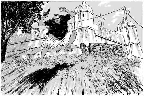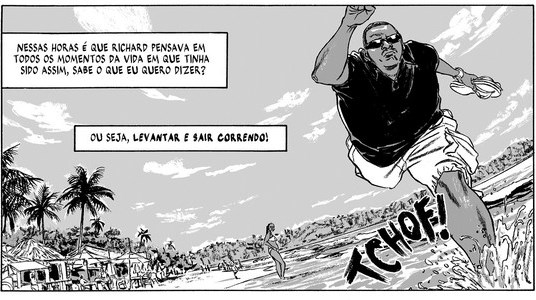 En el apartado gráfico, ‘Tungsteno’ también destaca por el realismo. Es en el dibujo de los personajes que el trazo de Quintanilha está más inspirado. Las expresiones faciales por ejemplo están muy bien conseguidas, pero a veces algunas posturas no acaban de cuajar visualmente. Resultan muy interesantes los encuadres de algunas escenas, con puntos de vista bastante novedosos, como los primeros planos recortados o la escenas de acción con ángulos imposibles. El uso de la onomatopeya ensalza los momentos más trepidantes o dramáticos con maestría. En la escenografía, se combinan edificios y elementos muy detallados con fondos a veces borrosos o simplistas. En el apartado del color, sorprende la combinación del carboncillo con grises planos. En los personajes de color, la mayoría de ellos, se usa el blanco como forma de hacer juegos de luces en las caras. Se consigue además, con una gama bastante discreta de grises, transmitir el clima soleado y caluroso de Salvador de Bahía. Muy interesante.