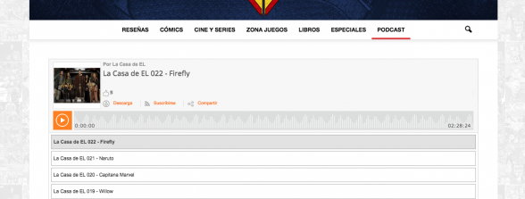 Finalmente, debido al auge y a la buena acogida que está teniendo nuestro Podcast, hemos decidido darle una página propia en el menú principal, desde donde podéis escuchar los últimos programas o conocer más sobre ellos.