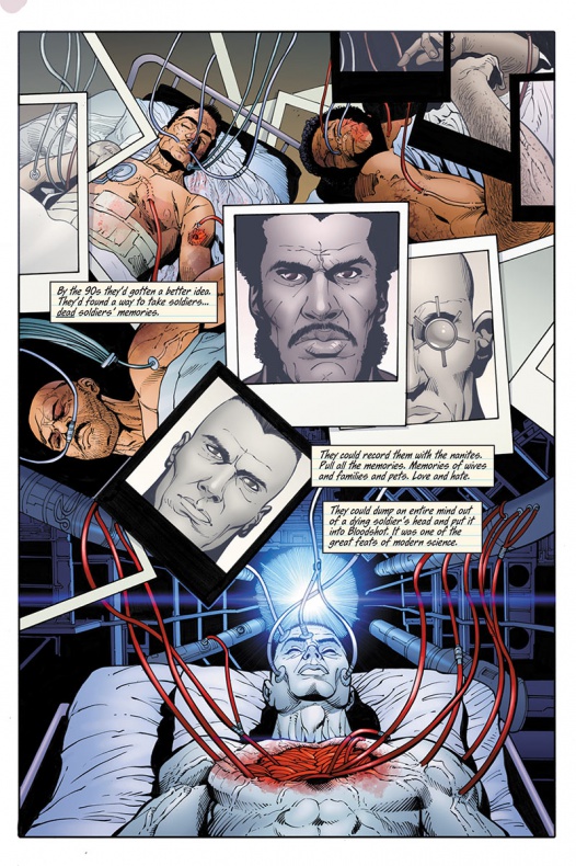 Ciertamente, la obra cumple con lo exhibido anteriormente y, aunque no resultaba demasiado complicado a raíz del estilo de ‘Bloodshot’, mucho más encaminado a la acción que no a argumentos elaborados o con un gran desarrollo, estamos ante el mejor guión hasta la fecha. Su acierto fundamental es aprovechar lo mejor de ‘Harbinger Wars’, el cruce o ‘crossover’ entre las cabeceras de Valiant ‘Bloodshot’ y ‘Harbinger’: los H.A.R.D. Corps o los predecesores de Bloodshot en lo referente al trato estatal con los psiots, humanos con poderes mentales.