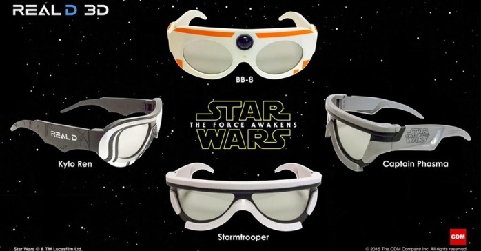 Hoy hemos podido ver gracias a CBR las gafas 3D oficiales que acompañarán al estreno de ‘Star Wars: El despertar de la Fuerza‘, el próximo 18 de diciembre. Sin duda los fans se alegrarán de poder conseguir alguno de los modelos inspirados en personajes de la película. De momento la información se refiere a los cines estadounidenses, y no sabemos si llegarán a Europa.