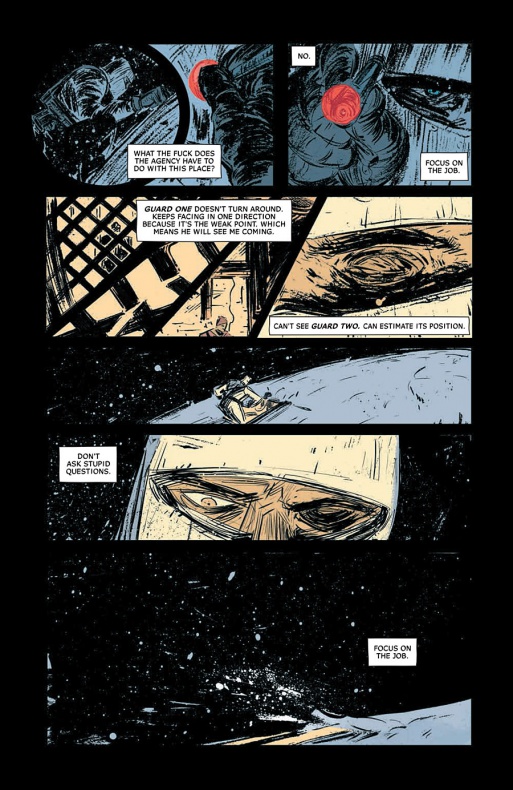 A su vez, también contemplamos la presencia de cierta corrupción en el seno de la Agencia. Básicamente, hay material de esta organización que acaba, inexplicablemente, en las manos equivocadas de forma sistemática. Además de conocer este singular hecho, también se nos revelan las razones y el mecanismo o sistema que se utiliza para llevar a cabo todo este trasvase de material, pese a que todavía quedan algunas preguntas por resolver en este aspecto. Y, ciertamente, poco más dio de sí el anterior tomo más allá de allanar el terreno para la traición o abandono de la Agencia por parte de Zero, el protagonista de toda esta historia.