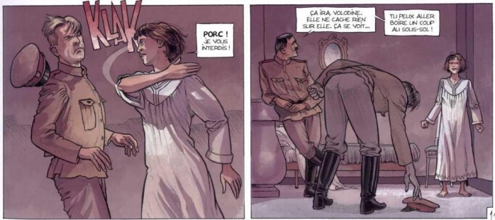 Como decía, la historia tiene fuerza por su convincente presentación histórica, por esos pequeños detalles que nos trasladan a la época que sus autores tanto se esfuerzan en retratar. Lo que ocurre es que este esfuerzo implica que se han descuidado (o directamente se decidió que fuesen elementos secundarios en beneficio de las intenciones de los autores) un mayor trabajo con los personajes, atropellados por el avance de la trama. Bien es cierto que hay un buen número de secundarios, y se renuncia a una mayor definición porque la importancia está en la trama, en el contexto global de lo que se está contando. Y es verdad que los caracteres individuales si tienen sentido y están bien presentados, pero me fallan las conexiones que hay entre ellos, demasiado imprecisas. Además, veo ciertas intenciones demasiado explícitas en el texto de los autores. Está bien fabular con la historia, pero veo una condescendencia demasiado evidente con la revolución rusa. Está bien que un autor se posicione y tome partido, pero la forma tan poco sutil que tienen Cothias y Ordas de mostrar sus filias y fobias me parece bastante superada en una obra de tintes históricos publicada a las alturas en las que estamos.