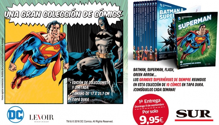 El coleccionable de DC Comics que promocionó en febrero El Periódico en Cataluña llega ahora a Málaga de la mano de Diario SUR. Desde el domingo 11 de septiembre hasta el sábado 12 de noviembre se podrá conseguir por 9,95€ uno de los diez volúmenes cartoné que integran esta colección que recoge las series más emblemáticas de la editorial americana.
