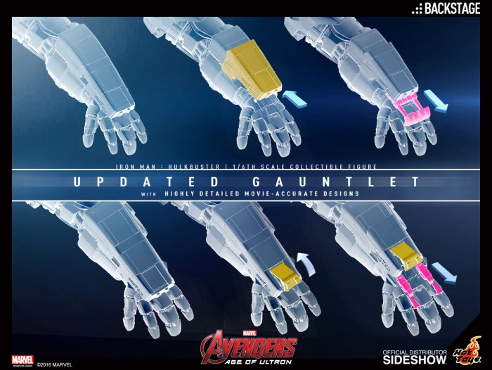 Desde la primera aparición oficial de la armadura anti-Hulk en el primer tráiler de ‘Avengers: Age of Ultron’, los fans han estado esperando a que se presentase esta figura. Según informa Side Show Toy, Hot Toys lanzará un coleccionable que está especialmente diseñado a partir de la imagen del Hulkbuster de la película. Esta figura tiene, aproximadamente, 55 centímetros de altura y, dentro del Hulkbuster, podemos ver la armadura Mark XLIII con luces LED en los ojos y un reactor en el pecho. Pero las luces LED también se extienden a los repulsores de las palmas, en la espalda y en las piernas.
