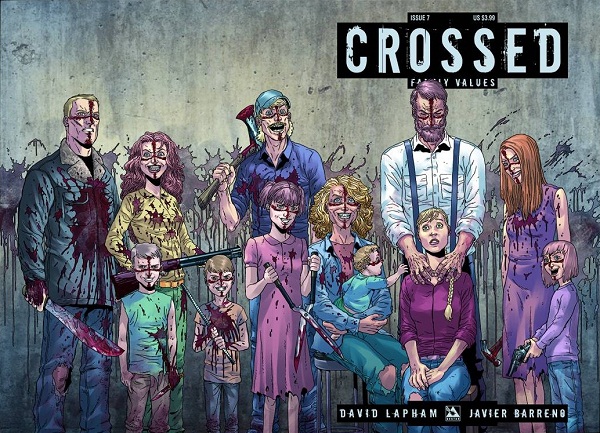 El fenómeno zombie (o infectados, que sería algo más apropiado en este caso) lleva ya muchos años en auge, con multitud de obras surgiendo cada año en los distintos medios artísticos abordando el tema desde todos los puntos de vista posibles. En lo que se refiere a cómic, obviamente ‘The walking dead’ sería el título de referencia en lo que a este género se refiere, pero existe otra obra que, siendo muy distinta, logró también captar la atención de muchos lectores en el momento de su publicación, seguramente debido a lo impactante de algunas de las escenas que se mostraban en ella. Hablamos de ‘Crossed’, cuyo primer volumen se publicó en nuestro país hace unos meses de la mano de Panini Comics. Ahora llega por fin un segundo volumen bajo el título ‘Crossed 2: Valores familiares’…