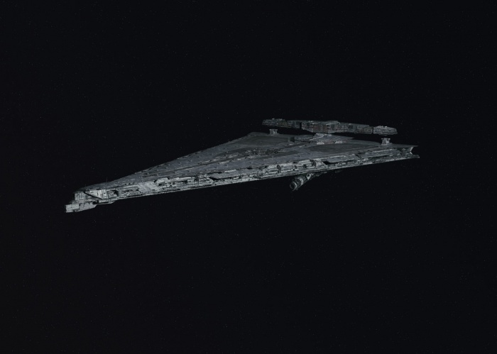 La otra novedad es la presentación de la que puede ser la súper nave del Líder Snoke. Es un acorazado de la Primera Orden, que según relata el supervisor de diseño, se creó por necesidades de la historia, por petición del mismo Rian Johnson, ya que necesitaba un acorazado enorme. Así que, en palabras de Jenkins, “es básicamente un acorazado. Una plataforma blindada de armas. Una artillería pesada”. Y no nos extraña, ya que este acorazado clase Mandator IV, de nada más y nada menos que de 7 kilómetros de largo, viene equipado con cañones láser orbitales gigantes para poder realizar bombardeos planetarios. Una nave que es mucho más grande que el Destructor Imperial tipo, cinco veces más concretamente, pero lejos de la nave capital de Vader, su Super Destructor, de nombre Ejecutor, mostrado también por primera vez en el episodio V de la saga. Os seguiremos informando. Que la Fuerza os acompañe.