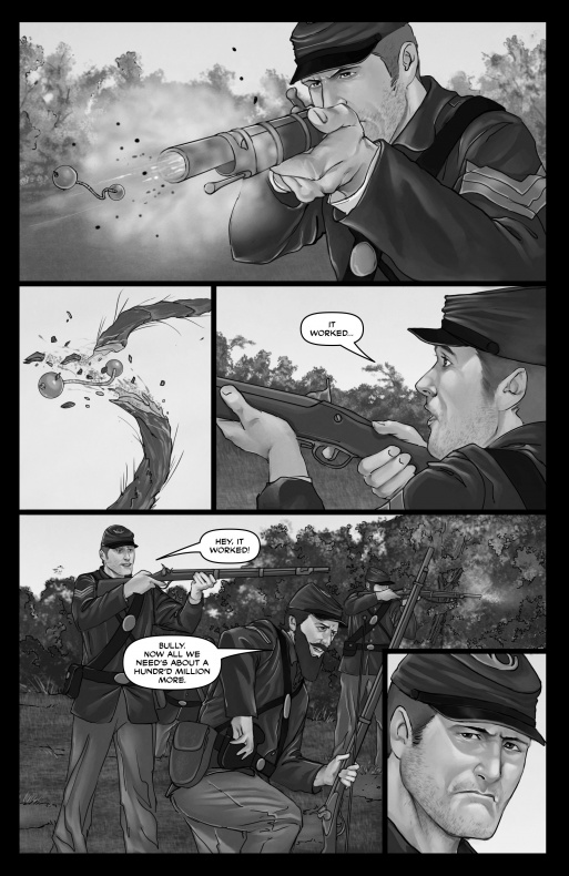 Quizás la serie que más interés gane de las cinco con respecto al tomo anterior sea la de ‘Una Unión más perfecta’, con el guion de Max Brooks y el dibujo de Michael DiPascale, que parece mejorar levemente. Tras unas primeras historias centradas en la presentación de los personajes y la situación, ahora ya entramos de lleno en el conflicto con unas páginas rellenas de guiños que todos aquellos entusiastas de la Guerra de Secesión apreciarán, desde apuntes sobre los modelos de armas utilizadas y su repercusión hasta la inclusión de personajes con carga histórica. La encarnizada batalla entre americanos e insectos gigantes ha comenzado, y las ganas por ver de qué manera va a seguir esto son muy grandes, sobre todo por el hype creciente inspirado por todo lo que tiene que ver con el coronel Thomas Chamberlain y su… ¿locura?
