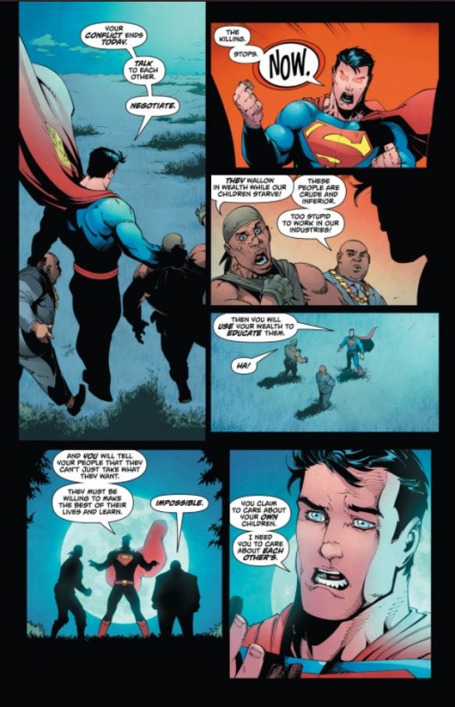 Como podéis comprobar, Jon sigue siendo una pieza clave en las maquinaciones de Mr. Oz, y es que por un lado tenemos a Superman evitando que el resto del mundo se vaya al garete mientras se encuentra en la encrucijada de salvar a su hijo o a su planeta adoptivo.
