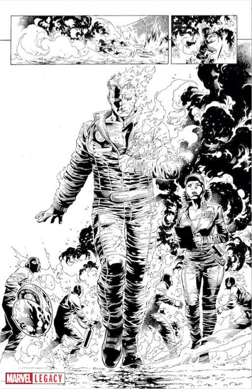 Las páginas mostradas gracias a Comicbook nos muestran una pequeña introducción a la Antorcha Humana y a La Cosa. Este primero acaba de salir de un coche estrellado mientras los operarios tratan de apagar las llamas. Evidentemente, él no trata de cubrirse de las llamas debido a sus poderes. Tras esto, vemos imágenes de los cuatro miembros de Los Cuatro Fantásticos trabajando juntos en lo que parece una vida anterior. La Cosa aparece tras esto manteniendo una charla con Spider-Man, aunque no sabemos de qué hablan ya que las imágenes mostradas no contienen texto. Al terminar la página, Spider-Man le entrega una llave. Por último, la última imagen que vemos es a La Cosa luchando contra Doctor Doom en solitario y siendo, aparentemente, derrotada.