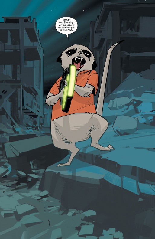 La nave árbol en la que nuestra familia favorita viaja junto al Príncipe Robot IV, a la niñera fantasma Izabel y a Petrichor, una mujer encerrada en el cuerpo de un hombre cuya condición la coloca en una situación inmejorable para empatizar con Hazel debido a los atributos de esta característicos de dos especies distintas, acaba llegando a Phang, un cometa que viaja por el espacio con destino incierto. El conflicto bélico entre la raza de Marko y la raza de Alana ha llegado hasta esta recóndita roca, y esto no se ha producido por su importancia estratégica sino por el valor de sus recursos naturales. Por si esto no despierta suficientes paralelismos con situaciones reales que ocurren en la actualidad, el guionista nos presenta a un grupo de personajes que viven en Phang, escondidos ante los horrores de la guerra, a los que no podemos llamar nada mejor que refugiados. Y es que a Brian K. Vaughan nunca ha tenido reparos en meterse en cualquier fregado por muy polémico que sea…