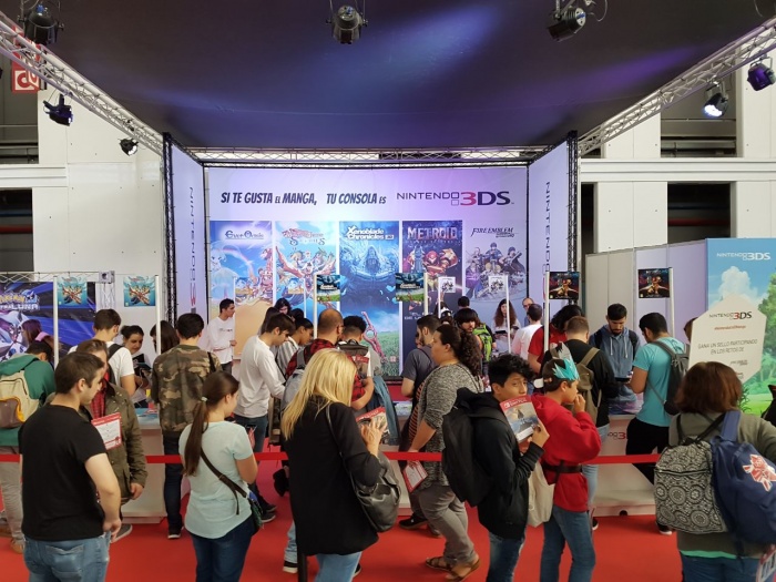 Otra de las zonas que siempre tienen una gran cantidad de visitantes es en la que se sitúan los videojuegos. En esta ocasión, Nintendo ha desplegado una gran cantidad de material con el que los visitantes han podido probar los nuevos lanzamientos de consolas como Nintendo Switch. Al entrar en esta zona, a los lados hemos visto una pequeña exposición sobre ‘Zelda’, el videojuego, seguida de dos zonas en las que podíamos probar ciertos videojuegos de deporte, ‘Mario Kart 8 Deluxe’, ‘Zelda’, ‘Sonic‘, ‘Arms‘ y ‘Super Mario Odissey’. Al finalizar la vuelta, pudimos ver un pequeño cuarto donde se podía probar ‘Doom‘. Todo esto estaba situado alrededor de una base en la que se podía disfrutar Nintendo Switch y los videojuegos más novedosos de la misma. Os dejamos algunas imágenes para que os hagáis una idea de todo esto: