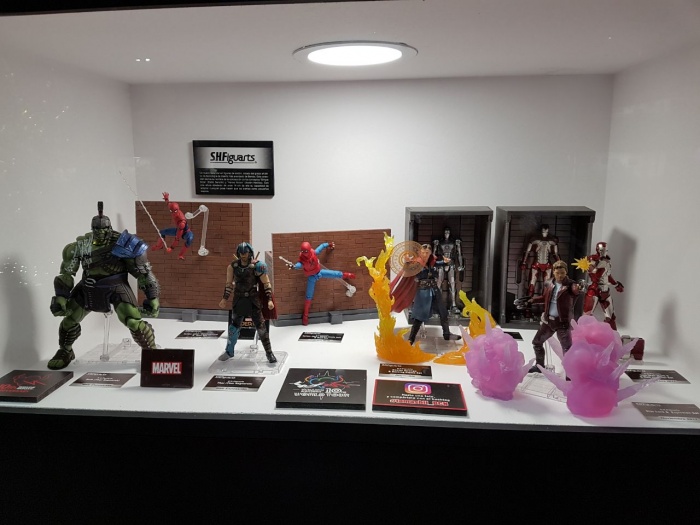 Una de las exposiciones que más destacó fue la que encontramos en el pabellón 1, el ya mencionado en el que encontramos los puestos de comida japonesa. Pues bien, estos deliciosos puestos compartían espacio (con gran distancia, eso sí) con varios stands entre los que destacaba la de Tamashii Nations 10th World Tour. Esta, en una de las entradas a su exposición, mostraba dos grandes figuras de Libra y Goku para seguir dejándonos impresionados con la cantidad de figuras que veíamos en su interior, algunas de ellas de tamaño real como la nube Kinton de Goku en la que los espectadores podían posicionarse de manera que pareciese que fuesen ellos quienes montasen a Kinton como Goku hizo en su momento. Además de estas, vimos figuras de la nueva película de Pacific Rim, de la Liga de la Justicia, de los personajes protagonistas de Marvel Studios, de Digimon, de Dragon Ball, Naruto o One Piece entre otros. Os dejamos las imágenes de las que pudimos disfrutar: