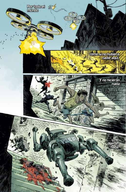 Pero Ellis no se limita a quedarse en eso, ya que de ser así el cómic podría quedarse en algo demasiado frío y pesado. El factor humano es importante en ‘Trees’, y de esta forma acompañaremos a varios personajes repartidos por diferentes ciudades del mundo en las que los árboles se han plantado y veremos los distintos aspectos en los que el evento ocurrido una década atrás ha afectado a la sociedad, transformándola en algo a la vez muy distinto y muy similar a lo que tenemos a día de hoy.