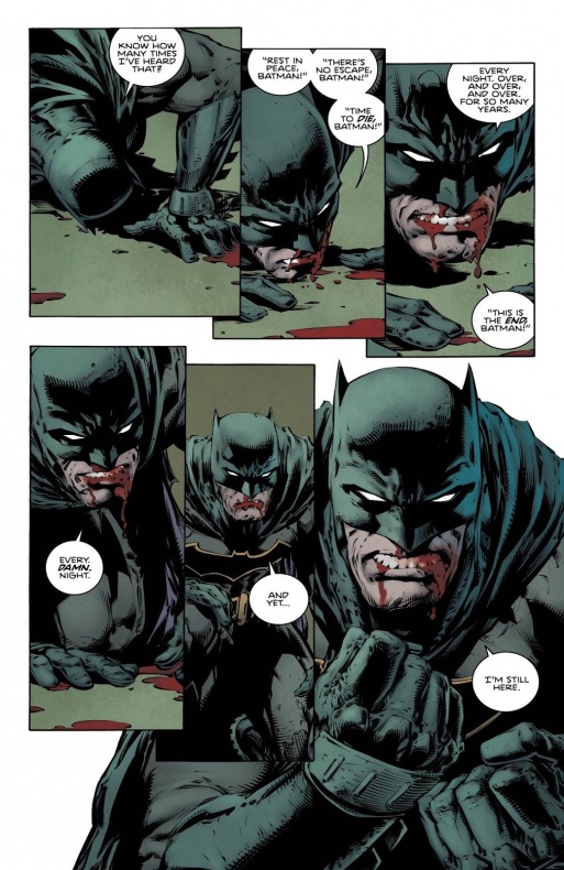 Un montón de personajes conocidos en el Universo DC se pasarán por estas páginas, pero obviamente al final todo será cosa de dos. El clímax final de esta historia culminará con esa famosa frase que se popularizó entre las masas ya desde que en el año 1989 se estrenara en cines la película Batman de Tim Burton, esa que tiempo después el bueno de Robert Downey Jr. trató de hacer suya en el Universo Cinematográfico Marvel (con gran éxito, todo hay que decirlo) y que todos los fieles seguidores del Cruzado de la Capa desean leer en un cómic de este personaje: “Yo soy Batman”.