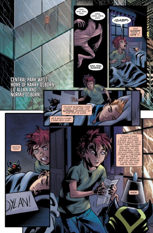 En la vista previa de Web of Venom: The Good Son #1 vemos a Normie mostrando a Dylan el gran secreto que ha encontrado en la casa de sus padres. Después de su etapa como Goblin Childe, Harry y Liz Allan han decidido encerrar a Normie en su casa. Evidentemente los hacen por el bien del pequeño, pero Normie obviamente no lo ve así.