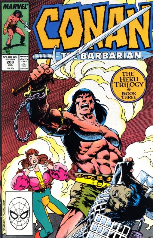 El guionista James Owsley, más conocido en tiempos recientes por el nombre de Christopher Priest, abre este tomo para acabar su etapa al frente de las aventuras de Conan con una de sus más memorables aventuras: la llamada trilogía de Heku.