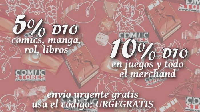 En concreto, la oferta pasa por un 5% de descuento en cómics, manga, rol y libros (el máximo permitido por ley), así como un 10% en juegos de mesa y merchandising. A este descuento hay que sumar que si utilizamos el código URGEGRATIS al realizar la compra, tendremos envío gratuito urgente por los pedidos superiores a 20 euros. Una oferta que, según nos informan sus responsables, no tiene fecha de finalización definida, pudiendo así aprovecharla durante este periodo.