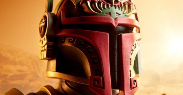 El busto de Boba Fett combina influencias mayas y arte urbano azteca sobre una base mandaloriana. Una joya para coleccionistas de Star Wars