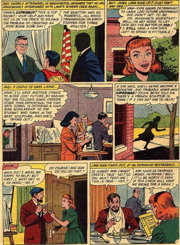En Superboy #90 de 1961 (por Jerry Coleman y Al Plastino), Lana Lang ve a Lois en un dispositivo de proyección del futuro y ve que Lois tiene básicamente su edad. Lana intenta sabotear la futura carrera de Lois como reportera, pensando que eso evitaría que Lois saliera con Superman años más tarde.