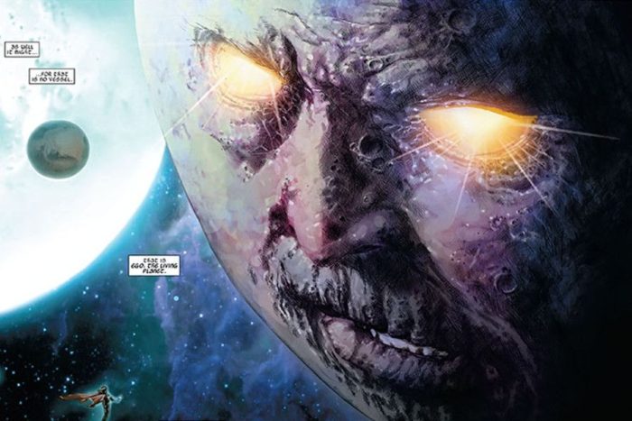 Tierra X, tocaba también cada rincón del universo Marvel y eso significaba también su parte cósmica. Supimos en la serie que Ego, el planeta viviente, era un embrión de Celestial que es lo mismo que nos dijo Kurt Russell en el universo cinemático de Marvel, es cierto que no es el 616, pero la idea está ahí, reutilizada o no.