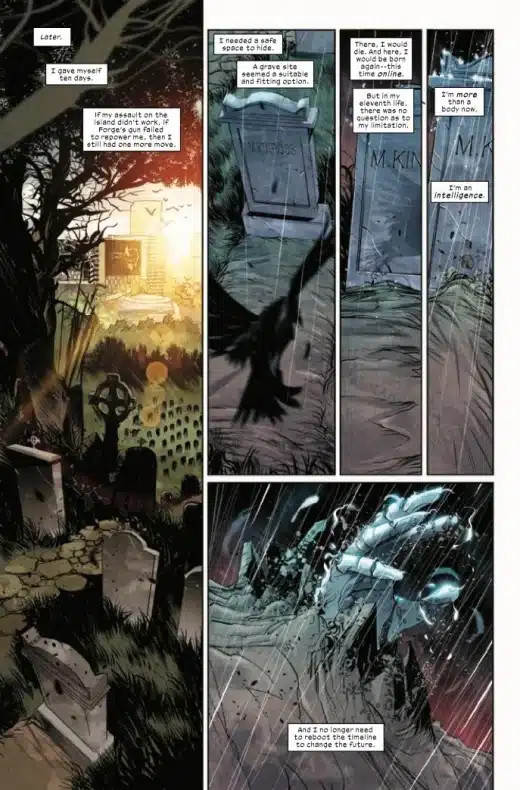 Sin embargo, eso no significa que haya resuelto sus problemas con los X-Men. A su regreso, MacTaggert se dice a sí misma que “ahora es más que un cuerpo” y es más bien “una inteligencia”. También advierte con un tono amenazante que “espera que [los mutantes] estén deseando escuchar su canto de cisne”.