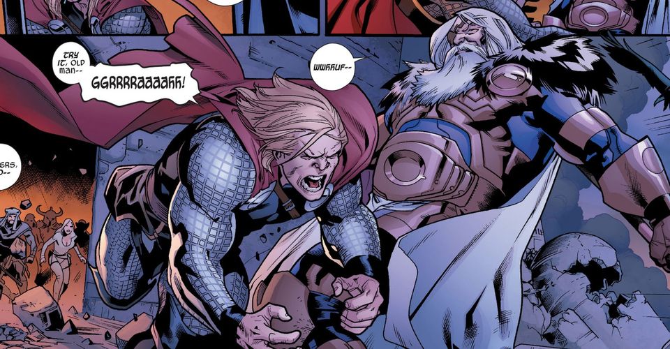 Siempre en cuestiones de mitología y dioses, las peleas entre padres e hijos ha sido bastante común. Dentro de los cómics de Marvel no iba a ser diferente y Thor siempre ha tenido ciertos problemas con su padre, pero no sería hasta que Odín quiso sacar a Asgard de la Tierra cuando llegaron a un verdadero conflicto entre ellos. Los dos dioses nórdicos se enzarzaron en una pelea brutal donde se alzó vencedor Odín, haciendo que Asgard volviera al espacio lejos de Midgard.