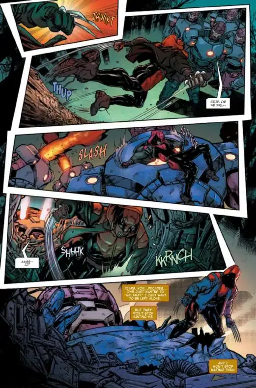 “Miles es lo mejor que hay en lo que hace…Y en esta realidad, lo que hace no es muy agradable. ¿Y si… Miles fuera arrebatado de todo lo que conocía (su familia, su hogar, su vida) y transformado en el arma de guerra más peligrosa e inmortal que el mundo haya visto jamás? Miles se ha convertido en Lobezno… pero eso no significa que tenga que ser lo que ellos hicieron de él…”