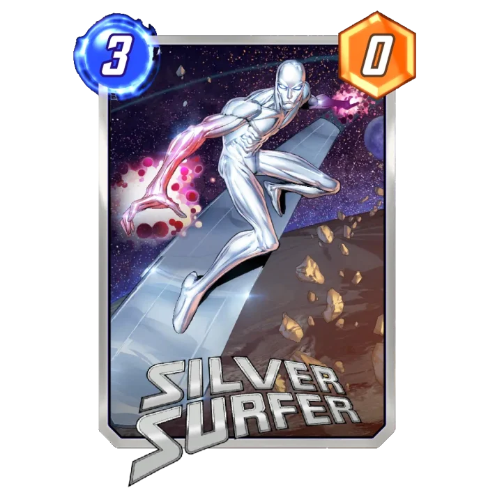 A través de un video, podemos ver que la actualización introducirá nuevas cartas, variantes y la posibilidad de que los jugadores compren cartas específicas en la tienda del juego. Sin duda, uno de las noticias más destacadas es que al juego llega la carta de un personaje muy querido de la editorial, Silver Surfer. La carta tendrá un coste de 3 puntos y 0 de fuerza, pero con la increíble habilidad: “Al revelarse: da +3 de poder a todas tus cartas de Coste 3”. Sin duda será una carta muy poderosa que conseguirá ganar partidas.