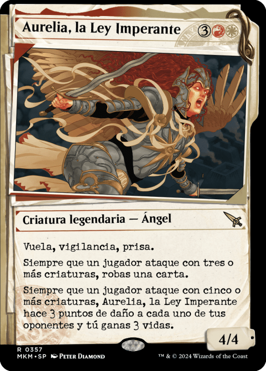 El gremio de la Legión Boros ha visto la unión con el senado como una oportunidad para subir su influencia, sobre todo con Aurelia imponiendo la ley sobre las legiones de ángeles. Ella no es una detective, pero su presencia hace que las criaturas con sub tipo detective se vean enormemente beneficiadas. Un ejemplo claro de esta unión de gremios es ‘Erzim, director de la Agencia’, la carta más carismática, ya que se trata del jefe de los detectives. Generando artefactos para volverse una máquina de ganar partidas. Hasta tenerlo en campo, criaturas pequeñas con Aurelia son la clave para aguantar.