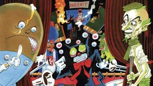 Feartreland es una explosión visual que nos arrastra por una especie de pantomima psicodélica, donde el hijo de Dick Whittington —una figura clásica del folclore inglés— atraviesa escenarios desbordantes de referencias teatrales, puns visuales y criaturas imposibles. Cocodrilos, genios y gorilas gigantes comparten escenario en esta especie de carnaval mental que recuerda tanto a la tradición del music hall como a los sueños más febriles de Terry Gilliam.
